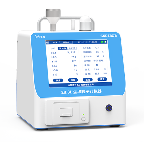 山东诺方基于单颗粒光散射技术,研发出可用于测量洁净室浓度或粒子数的设备,包括在线尘埃粒子计数器、手持式多通道颗粒物检测仪等,可在多种无尘场合实时监测颗粒物粒子数或质量浓度,如医药行业、电子行业、食品卫生行业、过滤器生产及检测等多个洁净行业。 | 现场打印 手持在线,声光报警,2.83L/min | |